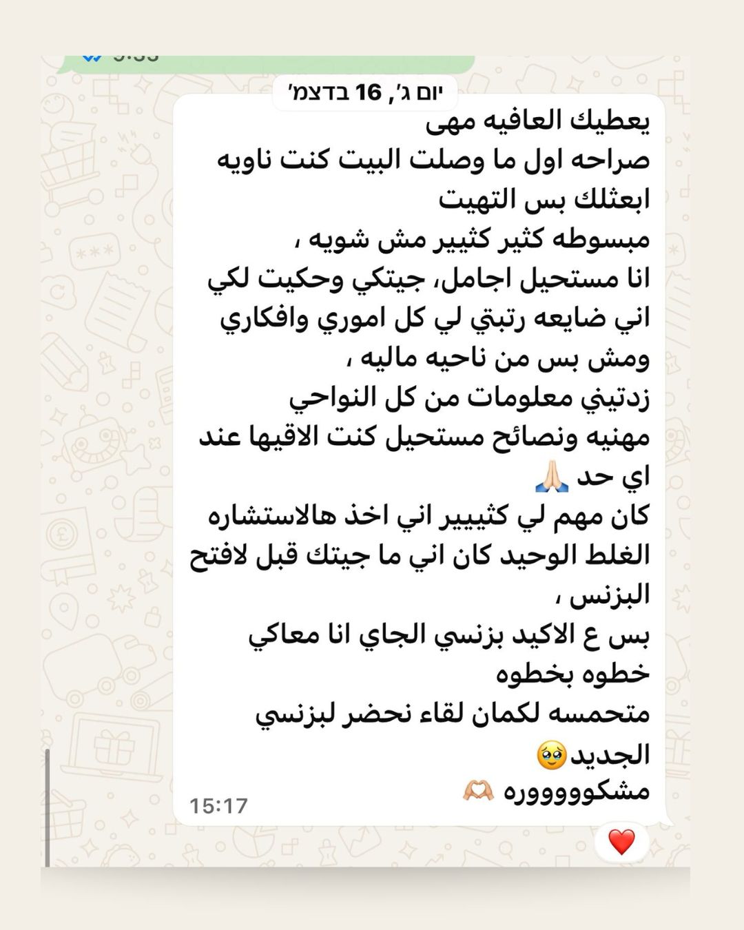 خلال جلسات الاستشارة، ما في نظريات معقدة ولا وعود وهمية. كل جلسة مبنية على وضعك الحقيقي، أرقامك، والتحديات اللي بتواجهك اليوم. الهدف هو مساعدتك تفهم وضعك المالي بوضوح، ترتّب أولوياتك، وتاخد قرارات مالية واعية تخليك تمشي بخط ثابت نحو الاستقرار.